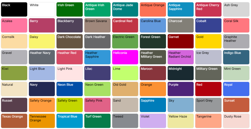 Colors displayed on screen may be a different from the actual item. Ink colors may look different depending on the shirt color applied to.
